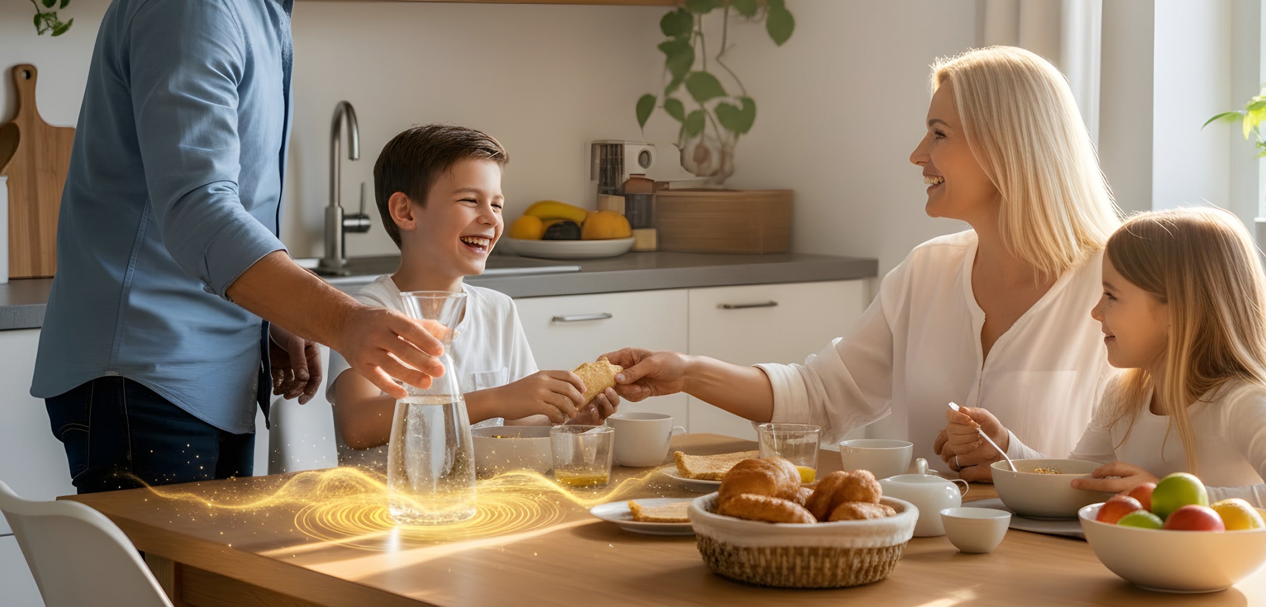 Ein Wasser, das frischer schmeckt, weicher wirkt und sich im ganzen Zuhause angenehmer anfühlt, entsteht nicht zufällig. Es ist das Ergebnis aus zwei Prozessen, die gemeinsam wirken: einer energetischen Restrukturierung durch das WELLWATER Modul und einer hochwertigen Reinigung über den Untertischfilter. Zusammen erzeugen sie ein Wasser, das sich anfühlt wie direkt aus einer natürlichen Quelle – voller Klarheit, Lebendigkeit und Harmonie.