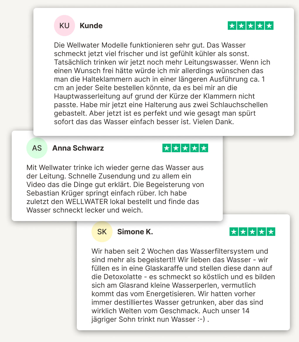 In Kombination mit WELLWATER erhältst du nicht nur energetisch harmonisiertes, sondern auch technisch einwandfreies Wasser, das frei von typischen Störstoffen ist und sich angenehm rein anfühlt.