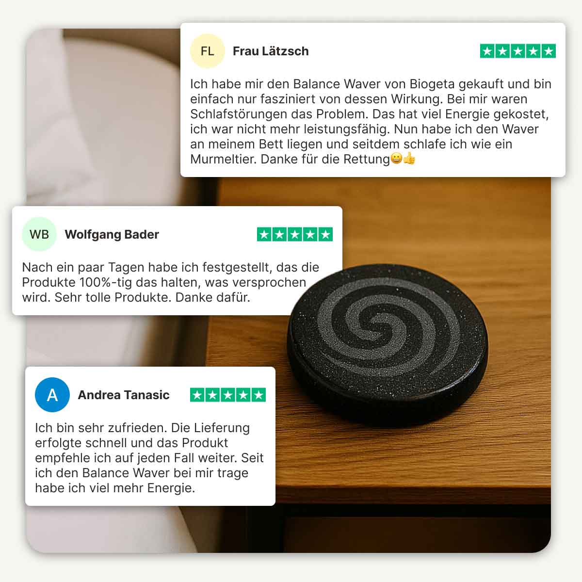 Der Balance Waver schützt dich und dein Zuhause vor unsichtbaren Belastungen wie Elektrosmog und Erdstrahlen (geopathische Störzonen). So kann sich dein Körper im Schlaf wieder vollständig erholen, die Schlafqualität verbessert sich und du startest mit neuer Energie in den Tag. Viele Anwender berichten von tieferem Schlaf, gesteigerter Regeneration und einem spürbar harmonischeren Lebensgefühl.