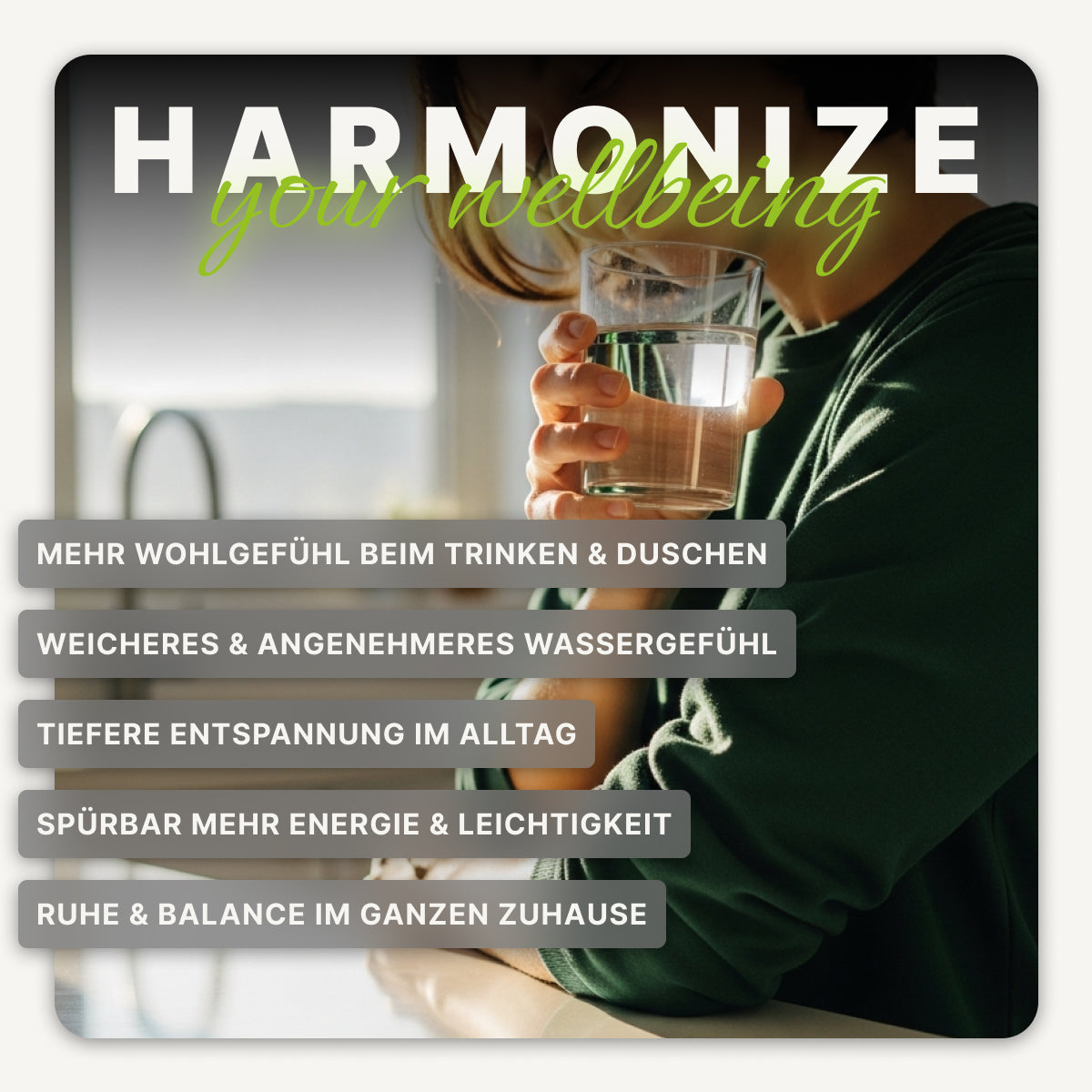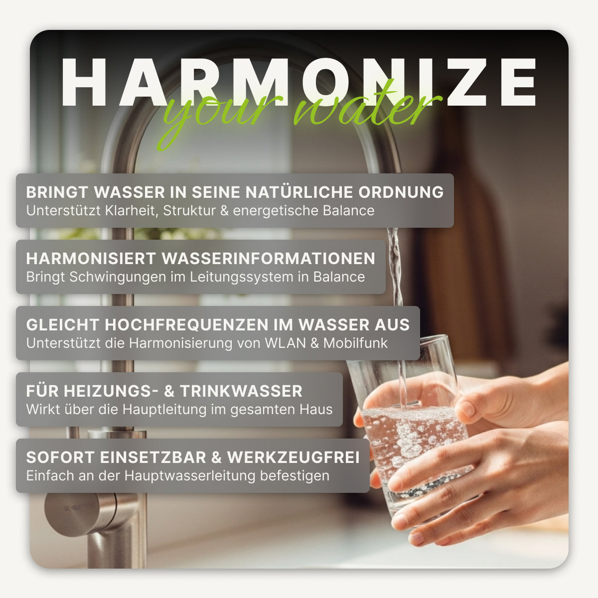 - Harmonisiert & restrukturiert Leitungswasser im ganzen Haus